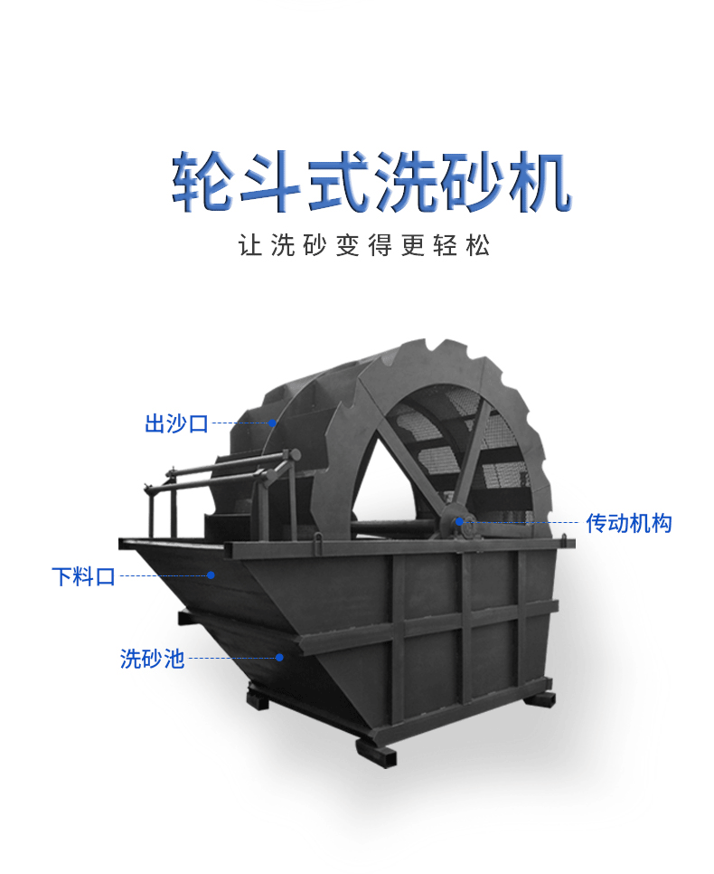 輪式洗砂機是洗砂機中常用、使用率較高的一種,是人工砂(包括天然沙)的洗選設(shè)備,該洗砂機廣泛應(yīng)用于建筑工地、砂石廠、水電站混凝土大壩工地等多種行業(yè)。該設(shè)備能除去覆蓋在砂石表面的雜質(zhì),同時破壞包覆砂粒的水汽層,以利于脫水,起到高效洗砂清洗作用。它具有洗凈度高,結(jié)構(gòu)合理,處理量大,功耗小,洗砂過程中砂子流失少,尤其是洗砂機傳動部分均與水、砂隔離,故其故障率大大低于目前常用洗砂機,是洗砂行業(yè)的優(yōu)秀選擇。
