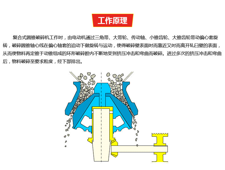 復(fù)合式圓錐破碎機(jī)是基于層壓破碎原理和多破少磨概念設(shè)計研發(fā)的集高擺頻、優(yōu)化腔型和合理沖程于一體的高性能彈簧圓錐破。復(fù)合式圓錐破碎機(jī)之所以成為應(yīng)用廣泛的圓錐式破碎機(jī),得益于其在各種工況環(huán)境下工作的可靠性,而CS系列極大程度上保留了其經(jīng)典結(jié)構(gòu),如彈簧保險裝置、大直徑主軸、重型機(jī)架和干油密封等,設(shè)備可靠性得到更大程度保證。多種腔型可供選擇,應(yīng)用多種工況條件。CS系列高效彈簧圓錐式破碎機(jī)有標(biāo)準(zhǔn)型和短頭型兩種機(jī)型,每種機(jī)型又配備多種腔型,可以適用于各種硬度物料的中碎和細(xì)碎作業(yè)需求。在大量的實踐應(yīng)用中顯示,CS系列高效彈簧圓錐破在用于中碎作業(yè)時性能尤為突出。
