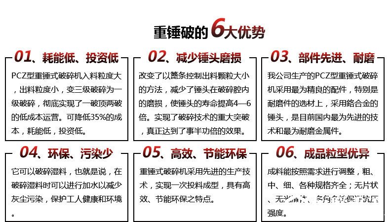 PCZ重型錘式破碎機是冶金、建材、化工和水電等工業(yè)部門中細碎石灰石、煤或其他中等硬度以下脆性物料的主要設備之一,具有一次成型、破碎比大、生產(chǎn)能力高、產(chǎn)品粒度均勻等特點。我公司已有三十多年設計制造錘式破碎機的歷史,產(chǎn)品結構**、性能可靠、工作平穩(wěn)、能耗低。另外,我公司生產(chǎn)的錘式破碎機價格合理,已形成系列產(chǎn)品,深受國內(nèi)外用戶歡迎。