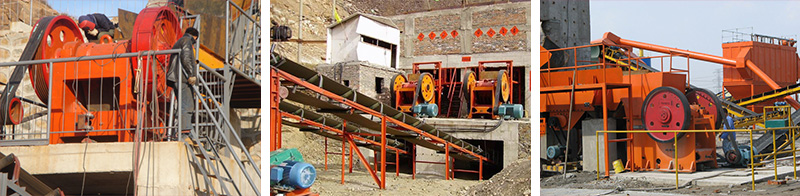 顎式破碎機(jī)工作時(shí),活動(dòng)顎板對(duì)固定顎板作周期性的往復(fù)運(yùn)動(dòng),時(shí)而靠近,時(shí)而離開。當(dāng)靠近時(shí),物料在兩顎板間受到擠壓、劈裂、沖擊而被破碎;當(dāng)離開時(shí),已被破碎的物料靠重力作用而從排料口排出。